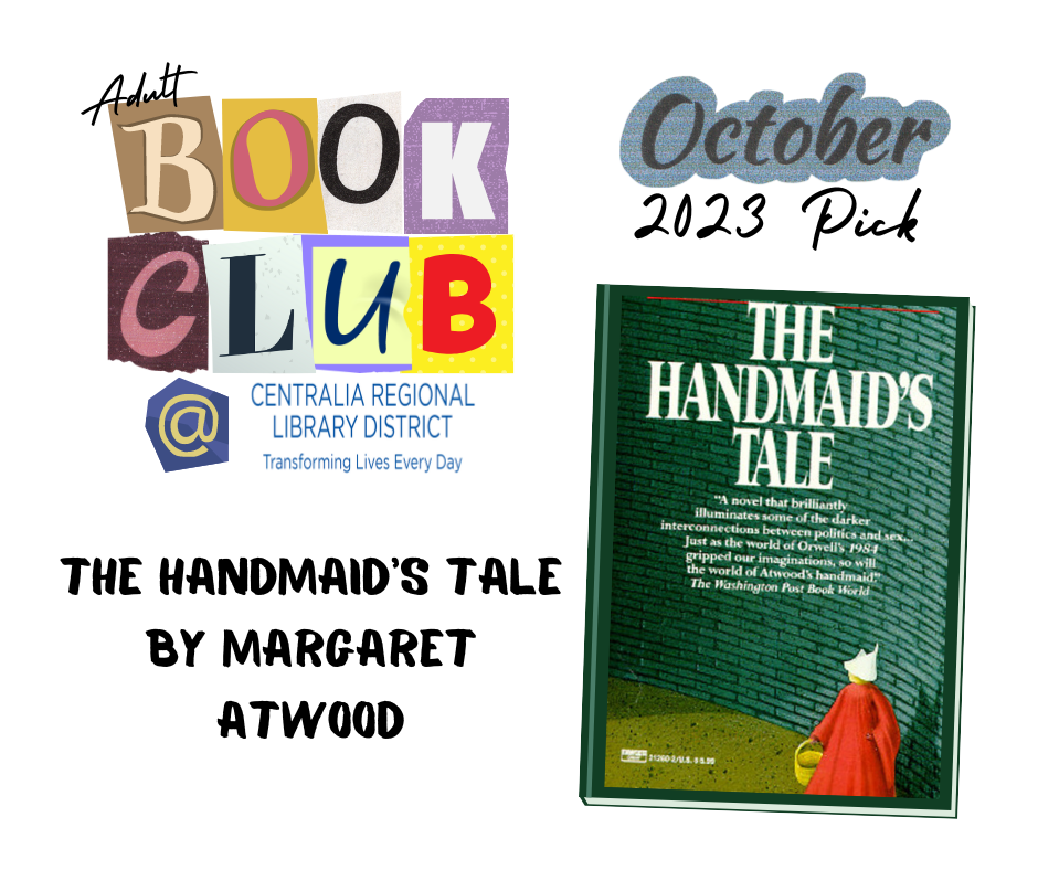 For our October 2023 Book Club meeting for adults, we will be reading The Handmaid’s Tale by Margaret Atwood: